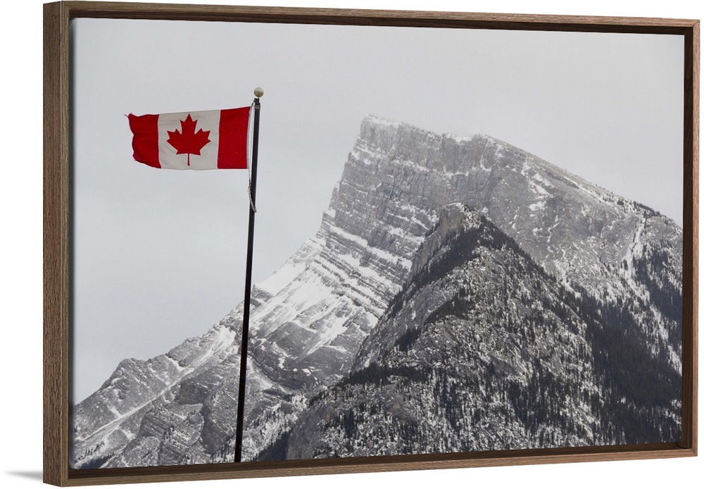 <p>Canada, Alberta, Banff. Mountain view with flag.</p>