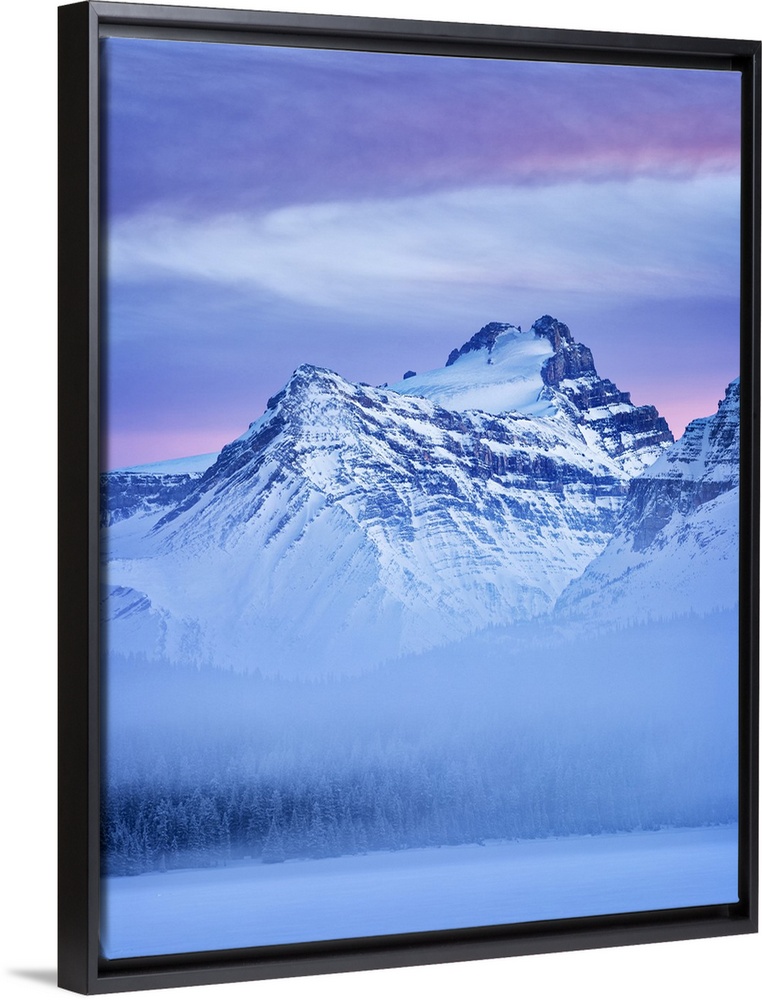 <p>Canada, Alberta, Banff national park, dusk and fog at mount Hector and bow lake.</p>