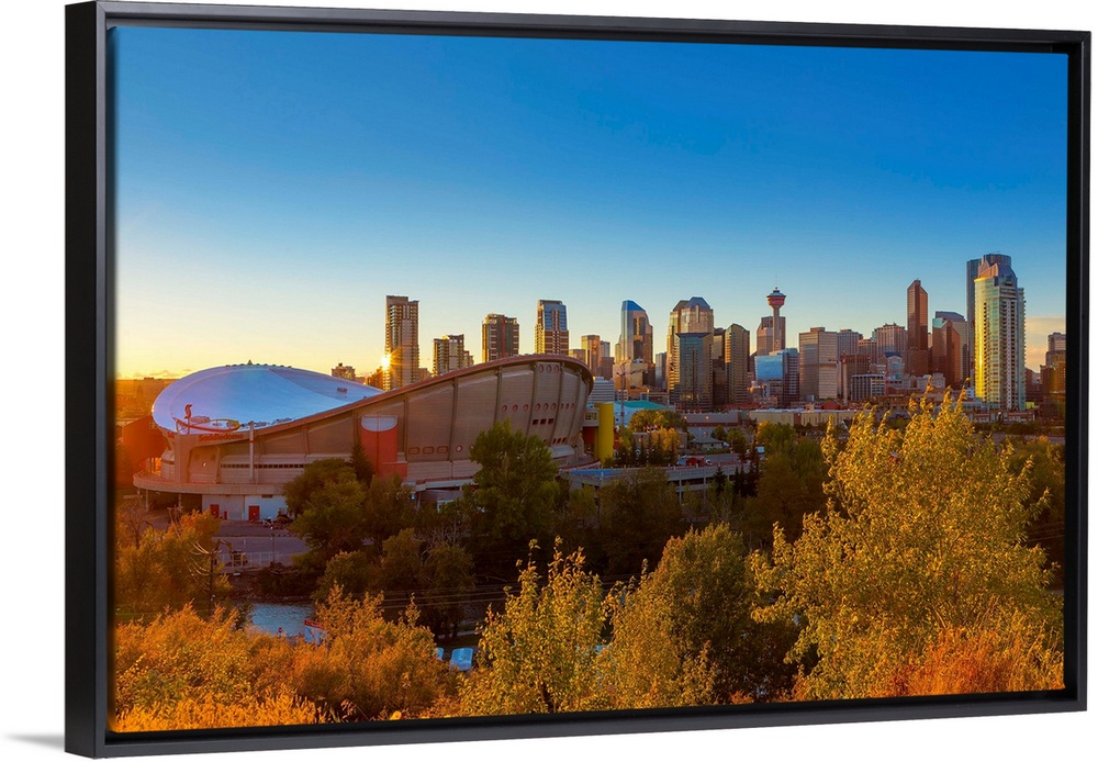 <p>Canada, Alberta, Calgary, Skyline of downtown Calgary and Saddledome.</p>