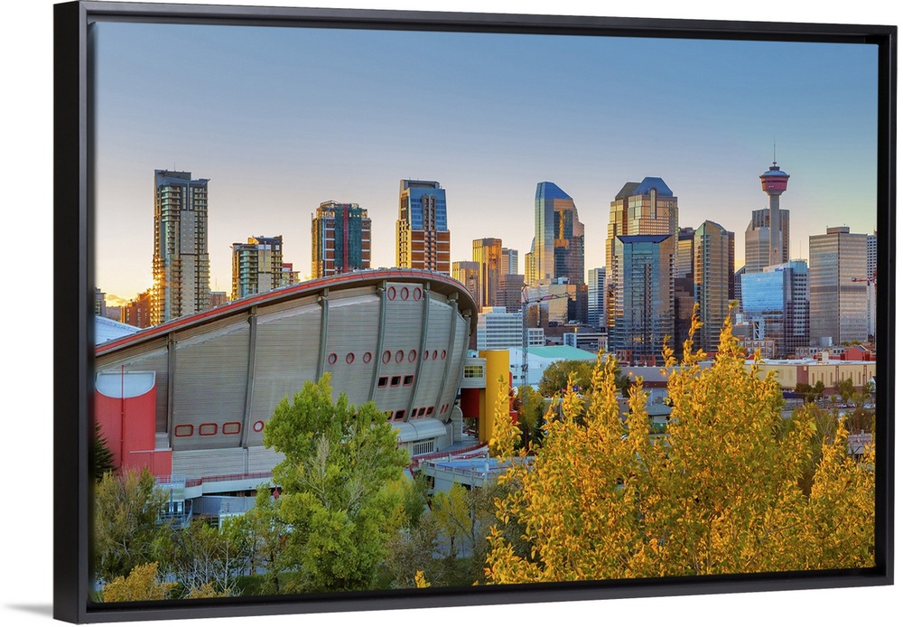 <p>Canada, Alberta, Calgary, Skyline of downtown Calgary and Saddledome.</p>