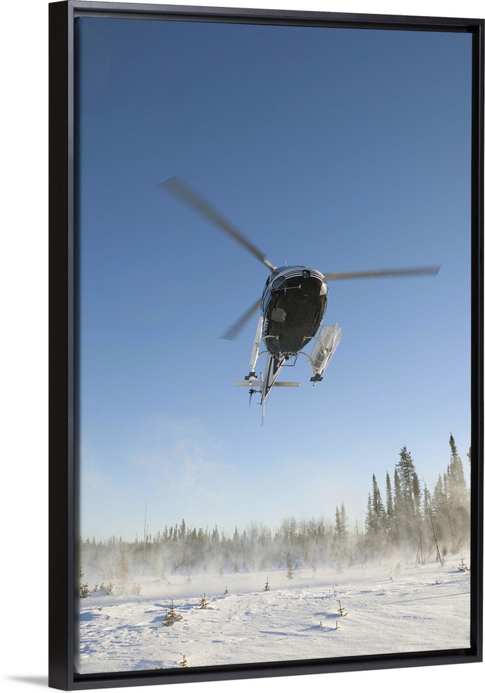 <p>Canada, Alberta, Helicopter landing on snow</p>