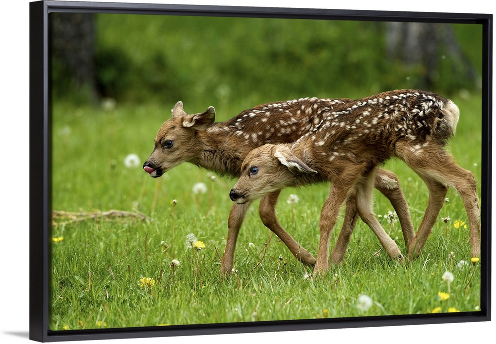 <p>North America, Canada, Alberta, Waterton Lakes National Park. New born mule deer fawns.</p>