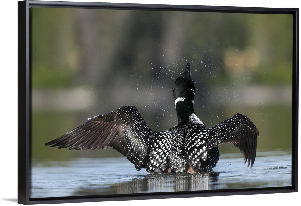 <p>Canada, B.C., An adult, breeding plumage Common Loon (Gavia Immer) flaps its wings at Lac Le Jeune.</p>
