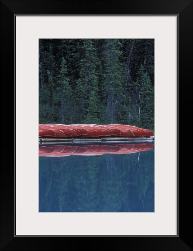 <p>Canada, Banff, Alberta. Canoes line the shores of Lake Louise. Credit as: Josh Anon / Jaynes Gallery / DanitaDelimont.com</p>
