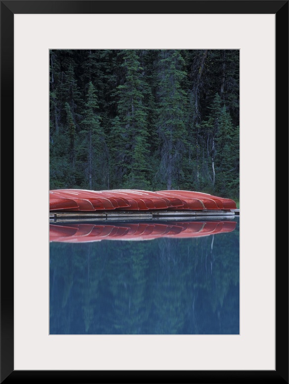 <p>Canada, Banff, Alberta. Canoes line the shores of Lake Louise. Credit as: Josh Anon / Jaynes Gallery / DanitaDelimont.com</p>