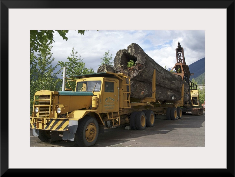 <p>Canada: British Columbia, Revelstoke Forestry Museum, outdoors exhibit of ancient trees on truck</p>