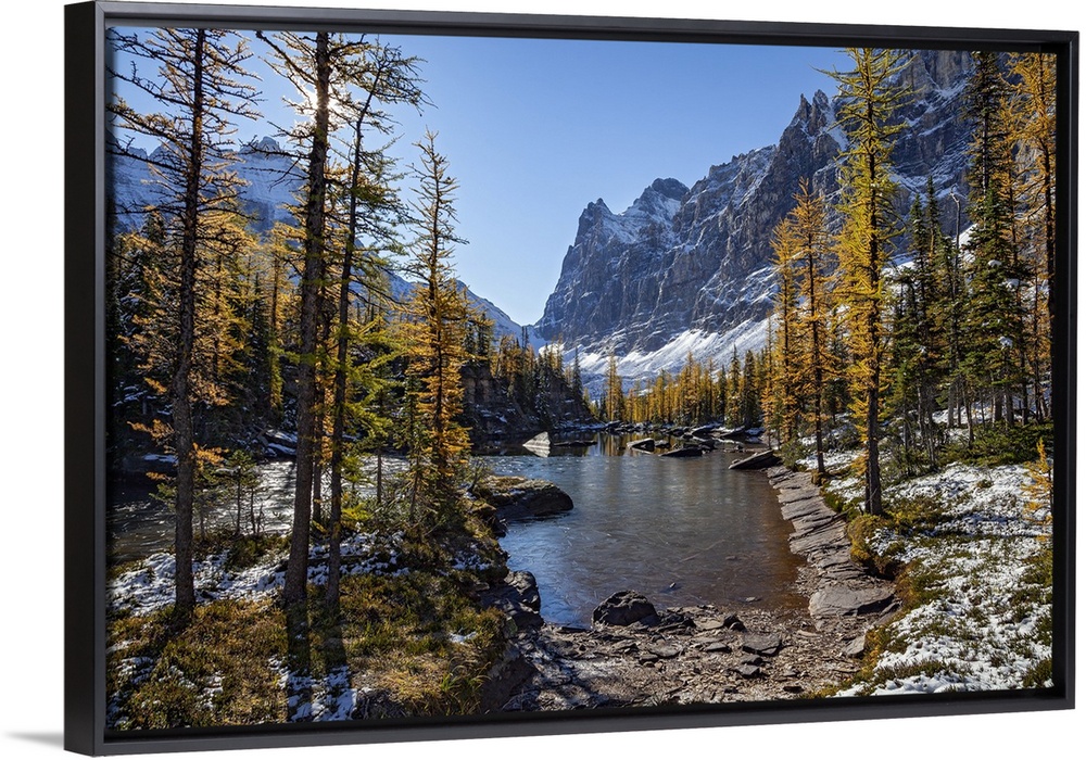 Elevate your home or office décor by adding a modern floating frame to your canvas art print. Finishing your gallery wrapped canvas with a floating frame enhances the beauty and detail of our giclée art prints. Handcrafted from solid wood, and available in multiple finish colors, there’s sure to be a frame to accent your canvas art print.