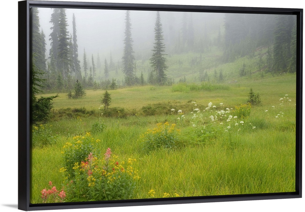 <p>Canada, British Columbia, Revelstoke National Park. Misty meadow scenic. Credit as: Don Paulson / Jaynes Gallery / DanitaDelimont.com (RF)</p>