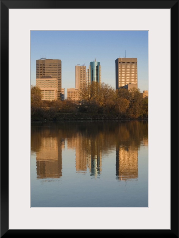 <p>CANADA-Manitoba-Winnipeg:.Downtown Buildings reflected in the Red River / Dawn</p>