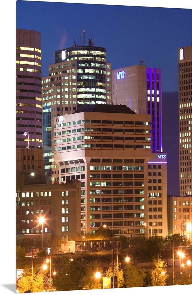<p>CANADA-Manitoba-Winnipeg:.Highrises of Downtown Winnipeg from the Forks / Evening</p>