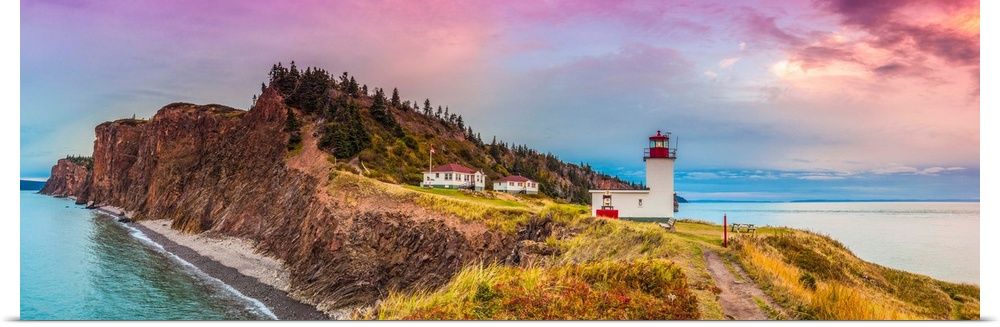 <p>Canada, Nova Scotia, Advocate Harbour, Cape D'or Lighthouse On The Bay Of Fundy, Dusk.</p>