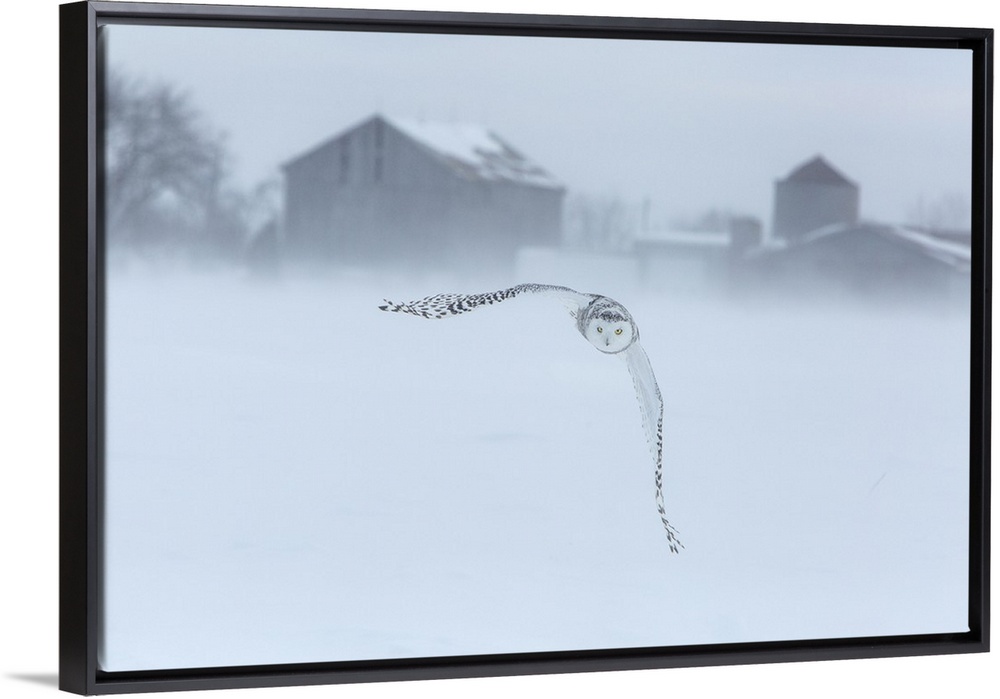 <p>Canada, Ontario, Barrie. Snowy owl in flight.</p>