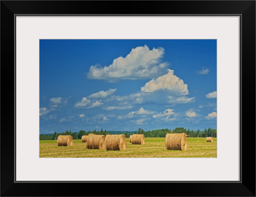 <p>Canada, Ontario, New Liskeard. Hay bales in farm field.</p>