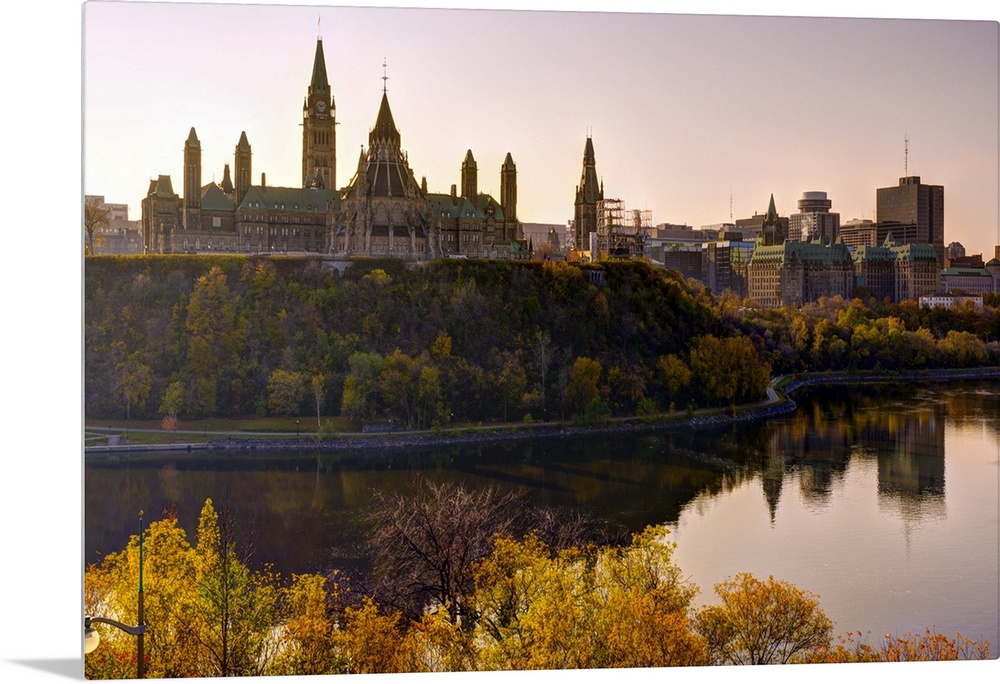 <p>Canada, Ontario, Ottawa, Canadian Parliament across Ottawa River</p>