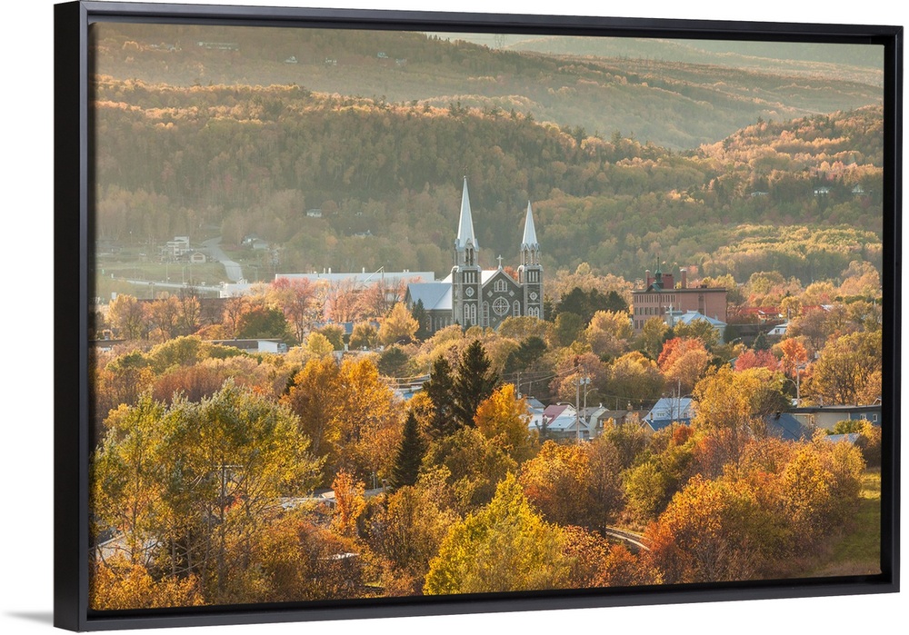 <p>Canada, Quebec, Capitale-Nationale Region, Charlevoix, Baie St-Paul, Elevated View Of Town Church, Autumn</p>