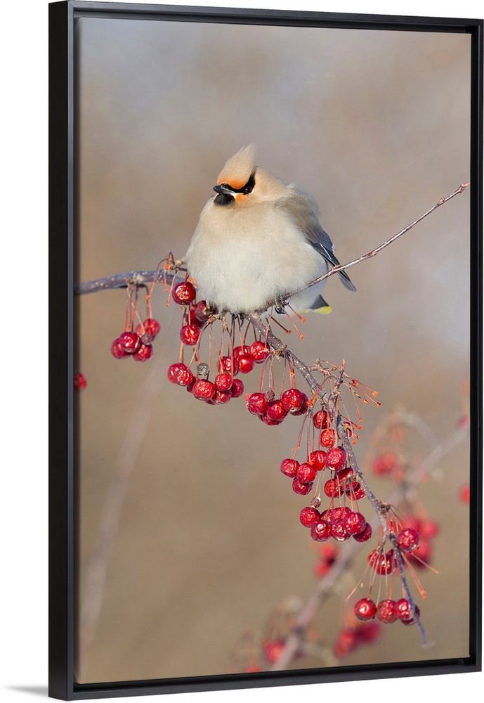 <p>Canada, Quebec. Bohemian waxwing bird on limb.</p>