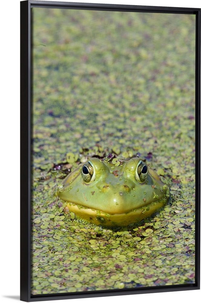 <p>Canada, Quebec, Boucherville. Green frog in duckweed.</p>