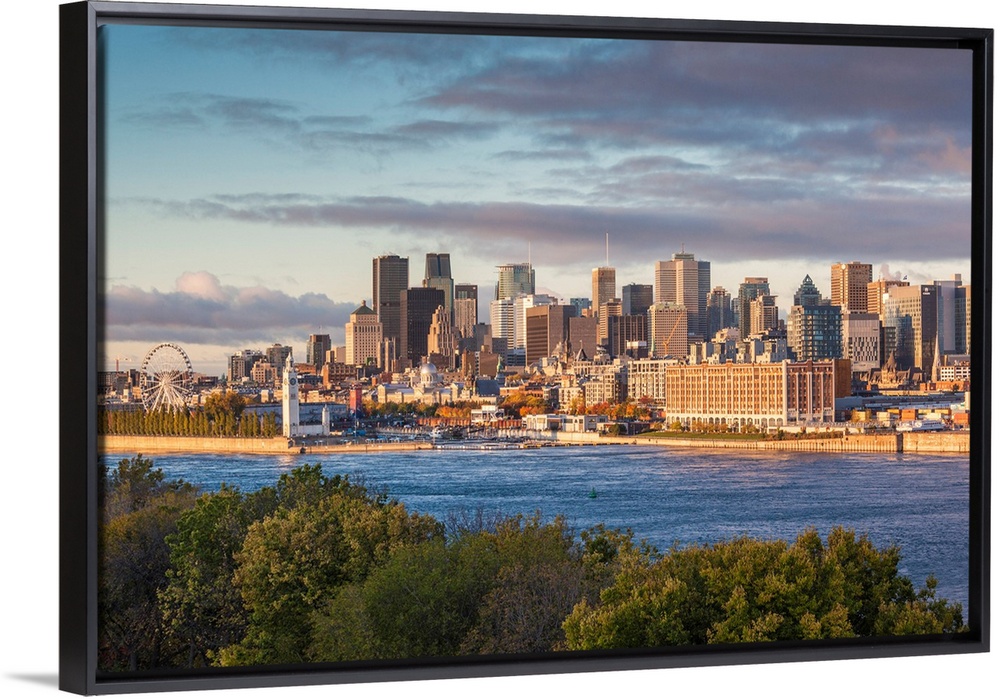 <p>Canada, Quebec, Montreal, Elevated City Skyline From The St. Lawrence River, Dawn</p>