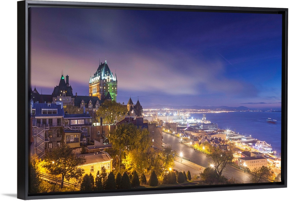 <p>Canada, Quebec, Quebec City, Elevated Skyline With Chateau Frontenac Hotel, Dawn, Fog</p>