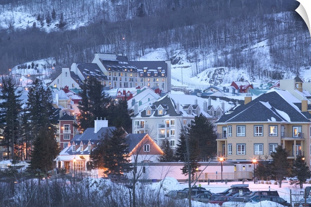 <p>CANADA-QUEBEC-The Laurentians:.Mont Tremblant Ski Village-.Ski Village View / Evening... Walter Bibikow 2004</p>