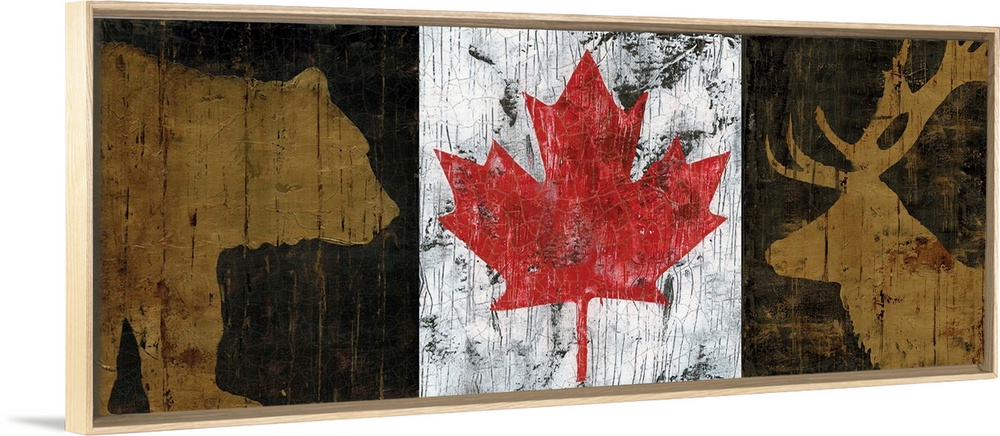 Art Cabin Wall Art Marie-Elaine Cusson Decorative Art Flags Canada Day Maple Painting Wildlife Bear Moose and Elk