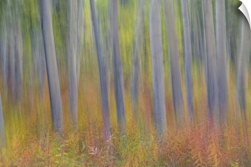 <p>Canada, Yukon Territory, Kluane National Park. Abstract motion blur of aspen trees.</p>