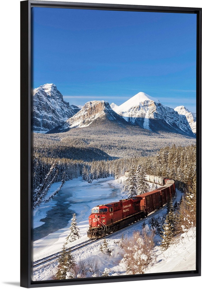 <p>Canadian Pacific Train In Winter, Morant's Curve, Banff National Park, Alberta, Canada</p>