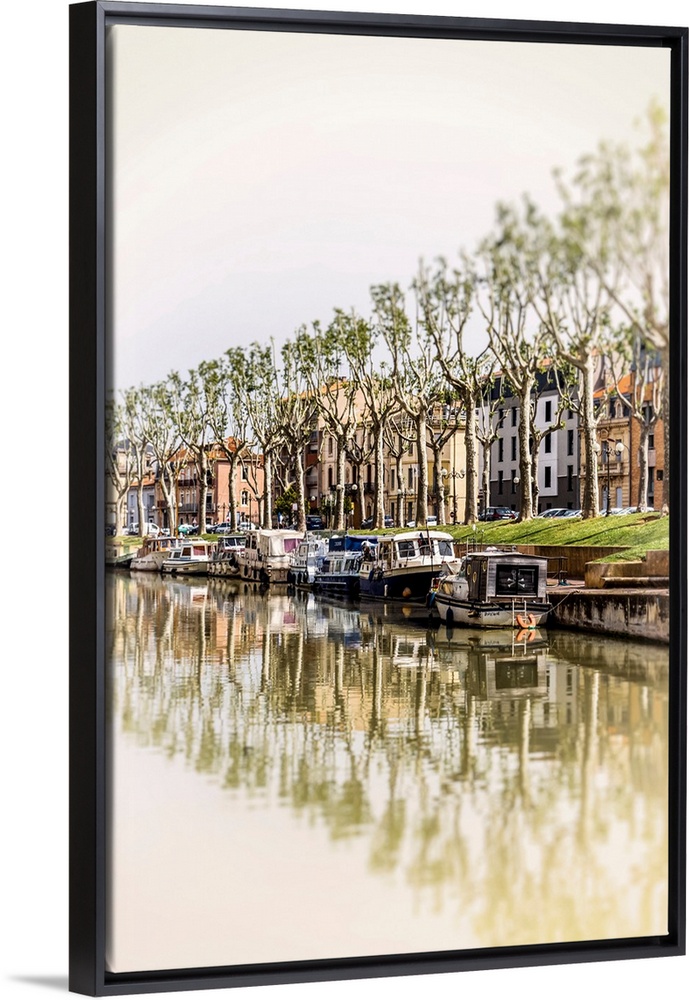 <p>Canal de la Robine, running through the centre of the town of Narbonne in Southern France; Narbonne, Occitanie region, France</p>