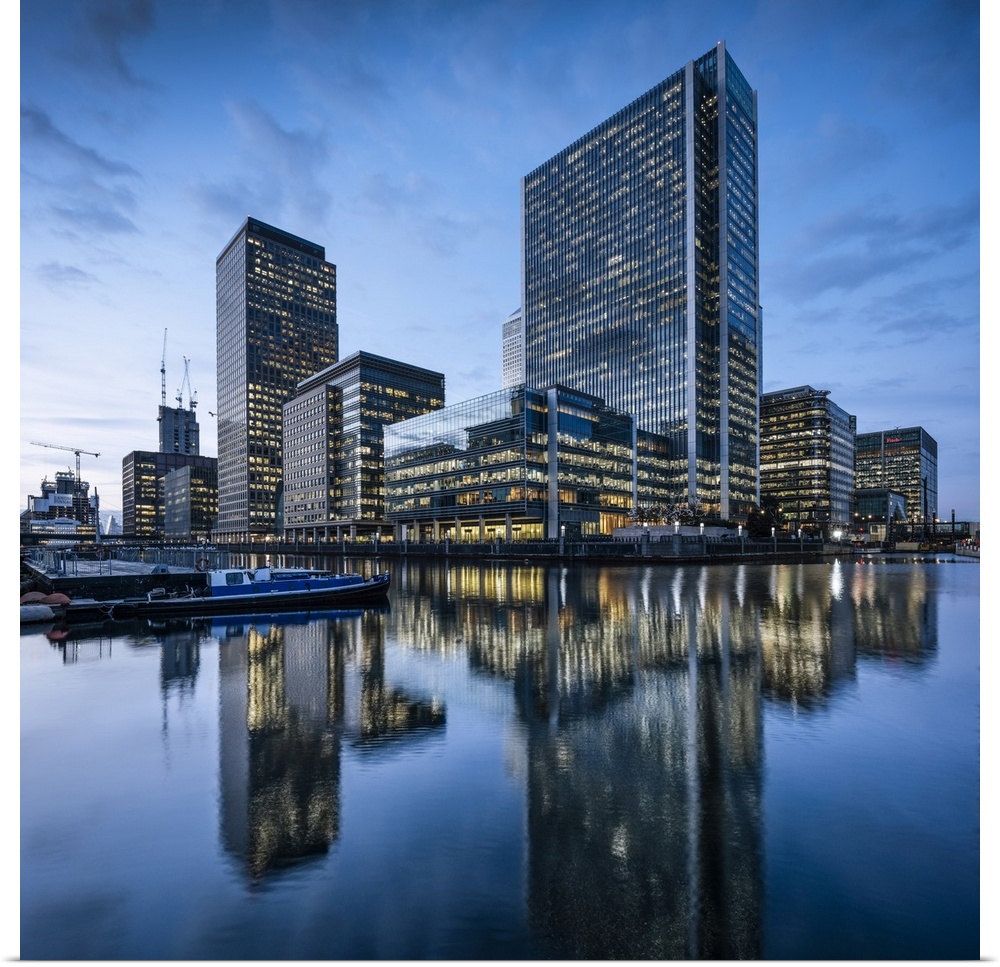 <p>Canary Wharf at dusk, Docklands, London, UK</p>