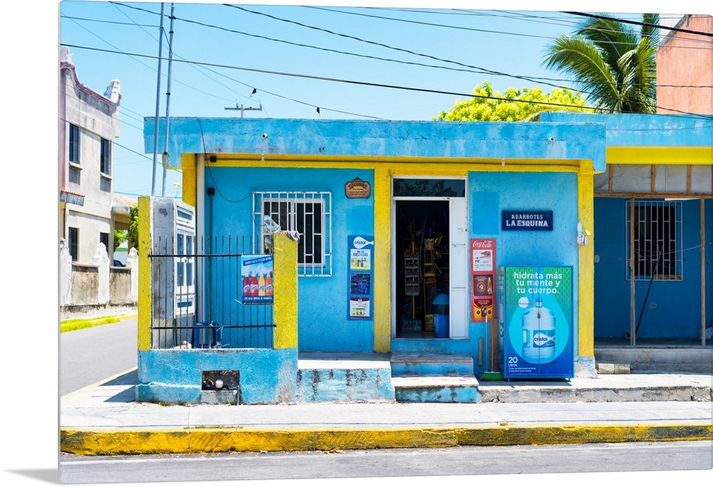 <p>Photograph of a blue and yellow supermarket in Cancun, Mexico. From the Viva Mexico Collection.</p>