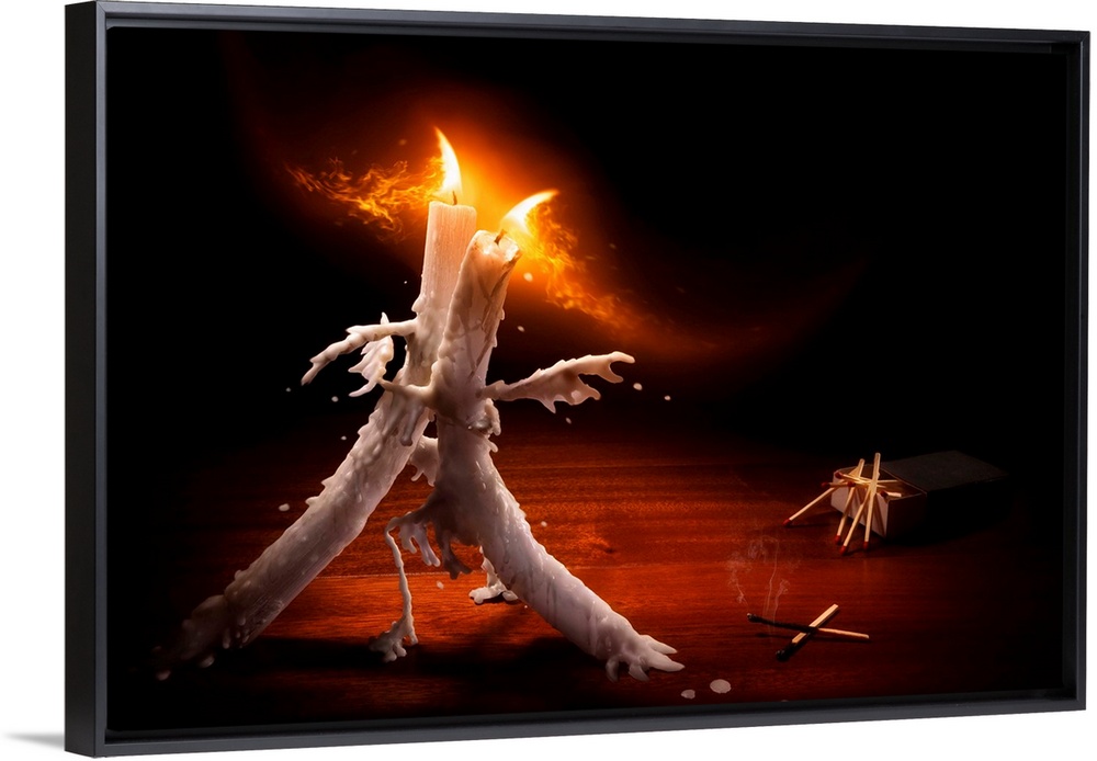 <p>Conceptual image of two lit candles dancing with melting wax.</p>