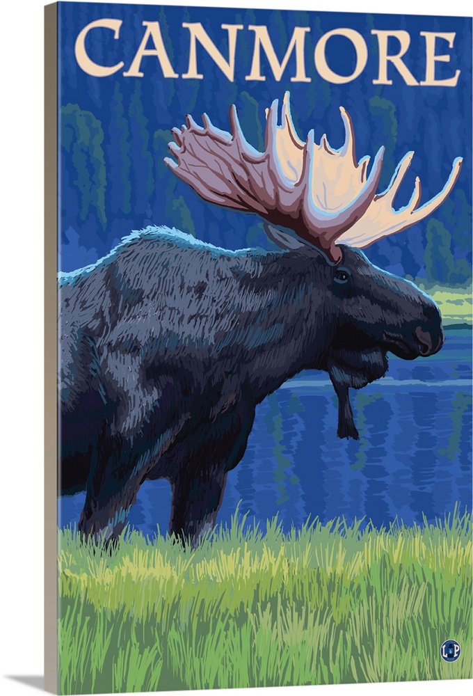 Canmore, Alberta, Canada - Moose at Night: Retro Travel Poster