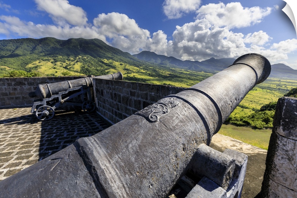 <p>Cannons, royal insignia, Brimstone Hill Fortress National Park, UNESCO World Heritage Site, St. Kitts and Nevis, Leeward Islands, West Indies, Caribbean, Central America</p>