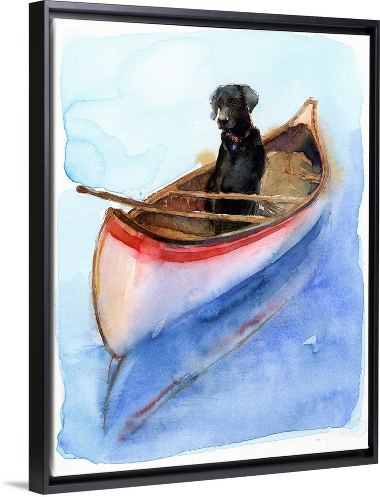 Art Contemporary Art John Keeling Lake House Art Painting Kayaking and Canoeing Watercolor Wildlife Dog Labrador