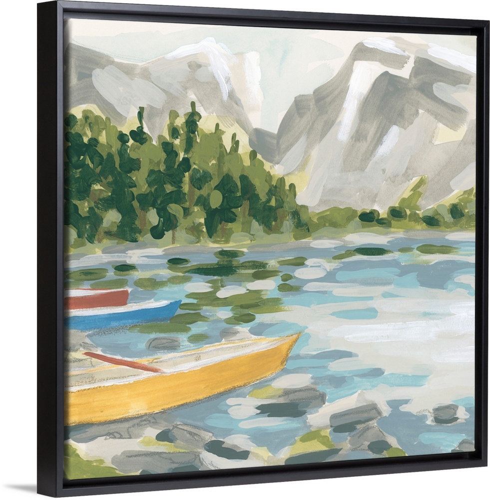 Art Decorative Art Lake House Art Landscapes Lake Mountains Painting Transportation Boat June Erica Vess