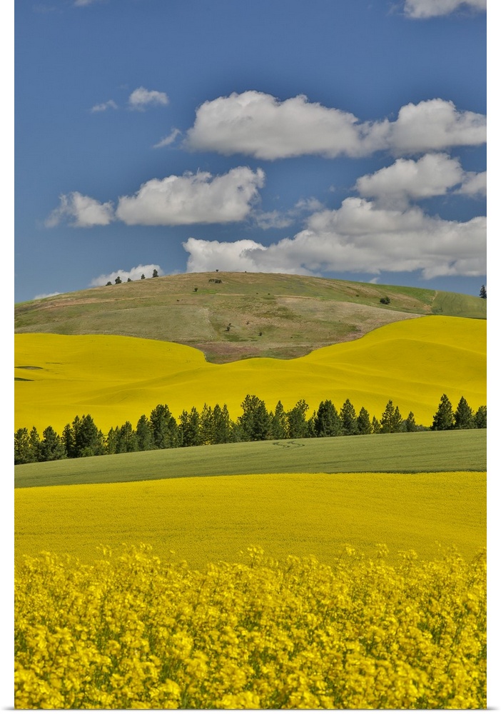 <p>Canola fields with pine trees near Kamak Butte, Eastern Washington</p>