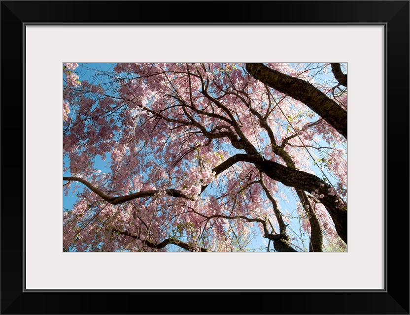 <p>Canopy of weeping Higan cherry trees, Prunus subhirtella var. pendula.</p>