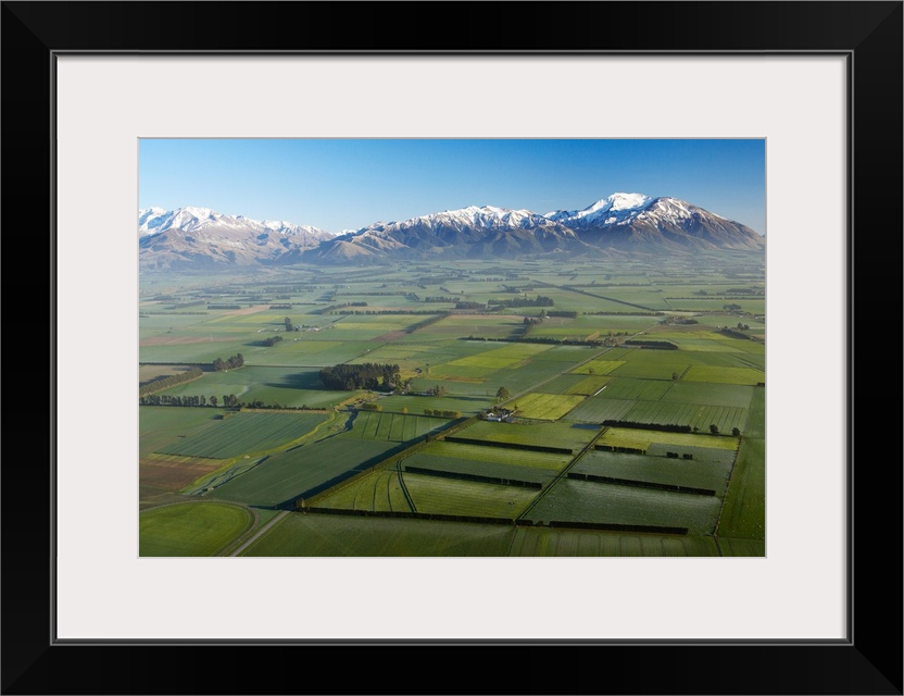<p>Canterbury Plains and Southern Alps, near Methven, South Island, New Zealand - aerial</p>