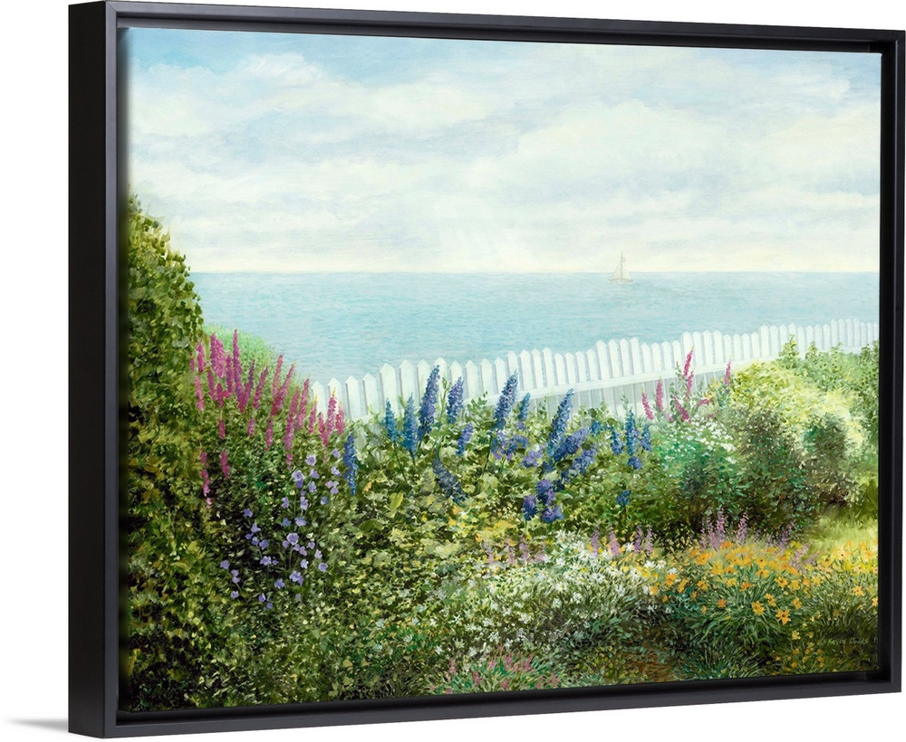 <p>Contemporary artwork of a garden in Cape Cod overlooking the ocean.</p>