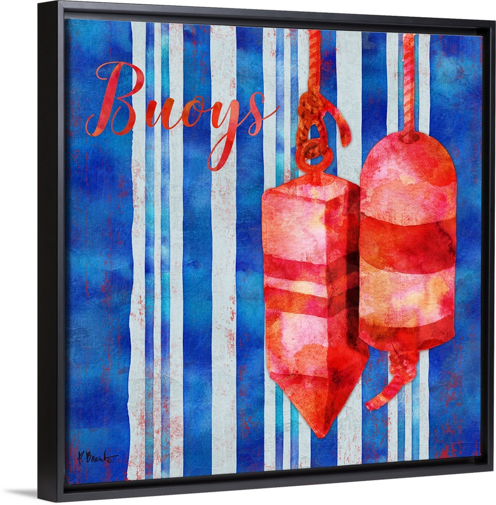 <p>Square nautical decor in red, white, and blue with illustrated buoys in the center and "Buoys" written at the top.</p>