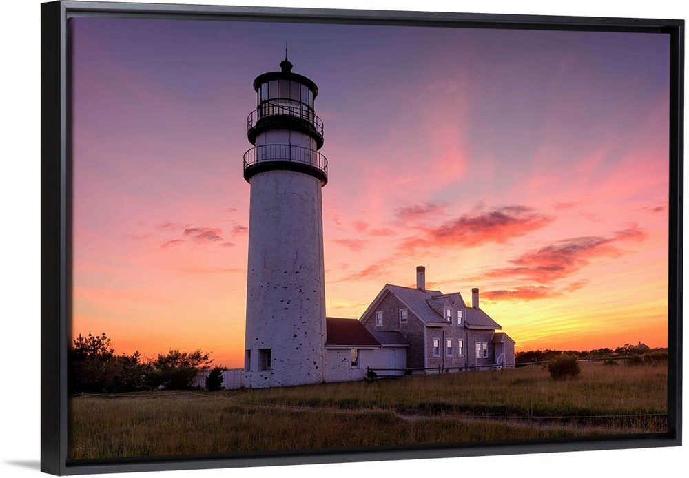 <p>Photograph of the Cape Cod Highland Lighthouse at sunset.</p>