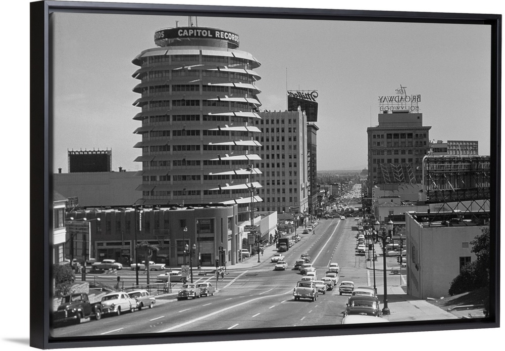 <p>Hollywood: Vine Street near corner of Hollywood Avenue, showing Capitol Records building.</p>