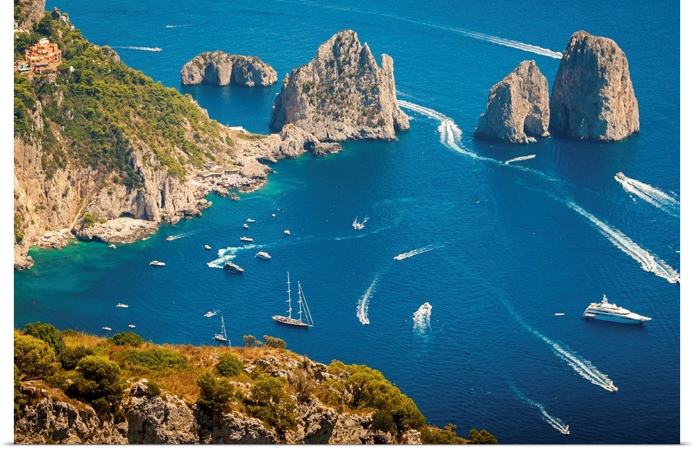 <p>Capri island, Naples, Italy. Aerial view of Faragliioni and coastline from Anacapri.</p>