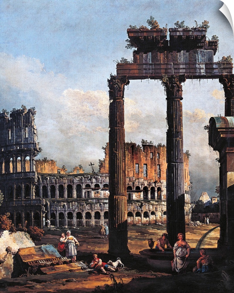 <p>Capriccio with the Coliseum, by Bernardo Bellotto, 1746, 18th Century, oil on canvas, cm 134 x 118 - Italy, Emilia Romagna, Parma, National Art Gallery. All. City Rome capriccio the Roman Forum columns the Coliseum ruins remains. (67082) Everett Collectio</p>