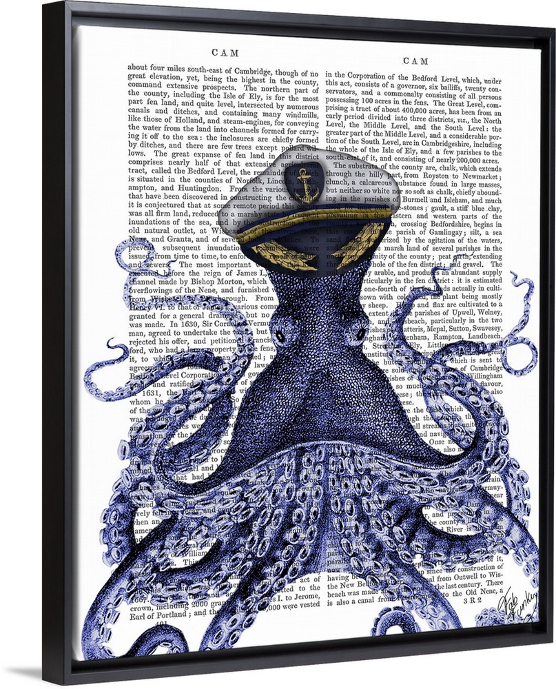Art Blue Wall Art Decorative Art Dictionary Art Fab Funky Graphic Art Painting Surrealism Wildlife Marine Life Octopus and Squid