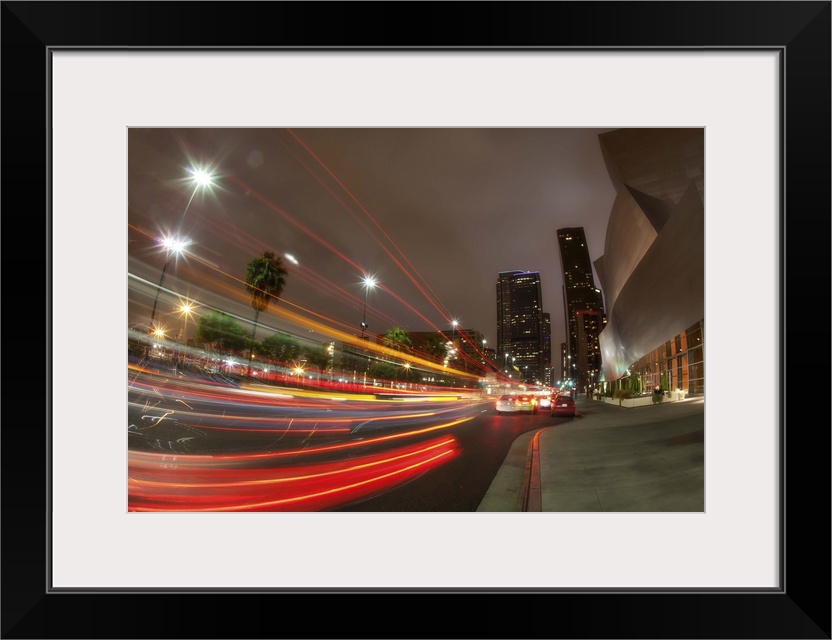 <p>Car trails by the Disney Concert Hall in Los Angeles</p>