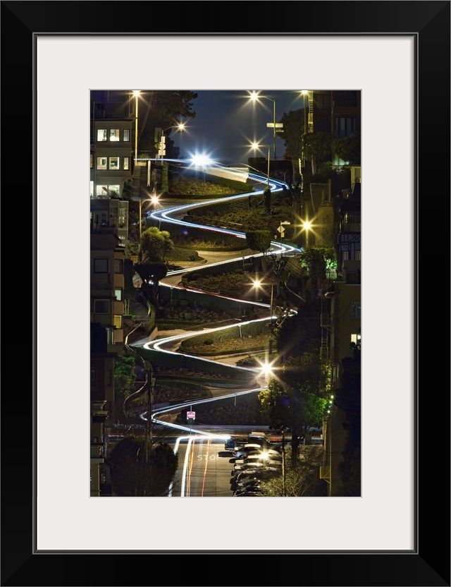 <p>The lights from cars during the evening on Lombard Street in San Francisco, California.</p>