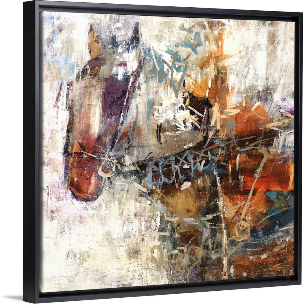 <p>Contemporary abstract painting of a horse created with various hues and shades of brown.</p>