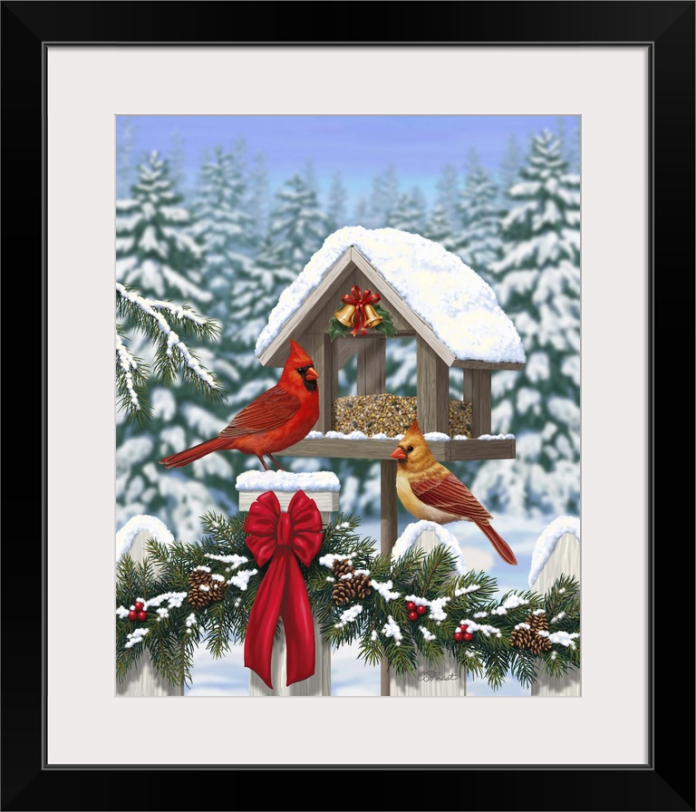 Art Contemporary Art Wildlife Crista Forest Four Seasons Winter Holidays Christmas Painting Wildlife Bird Cardinal