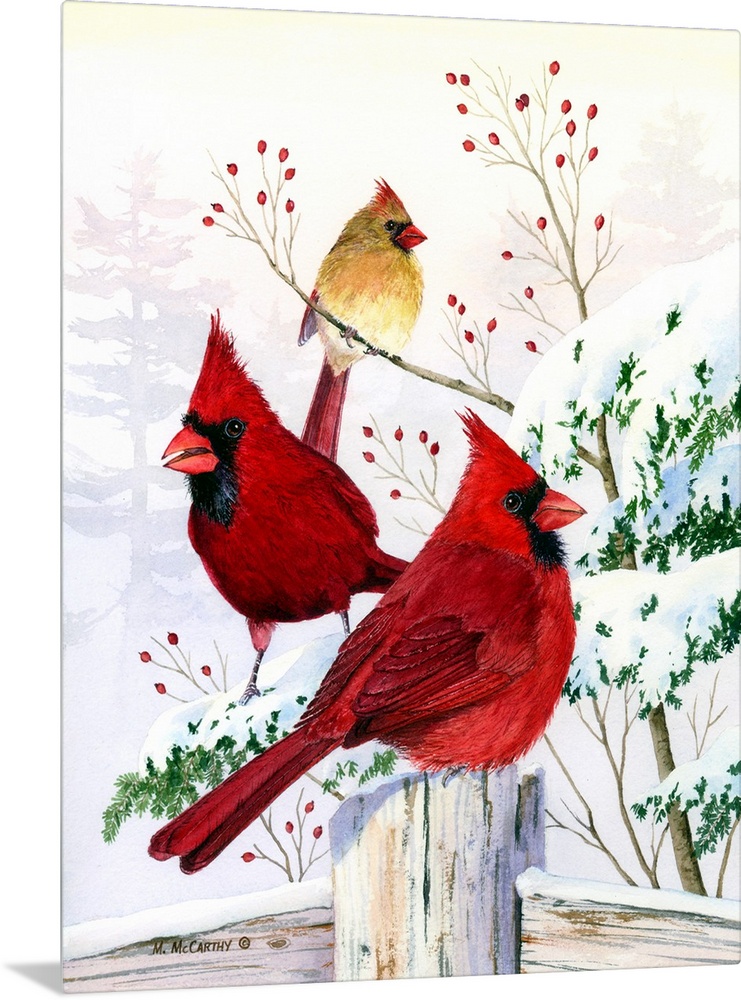 Art Red and Green Christmas Traditional Christmas Four Seasons Christmas Maureen McCarthy Wildlife Bird Cardinal Garden Birds